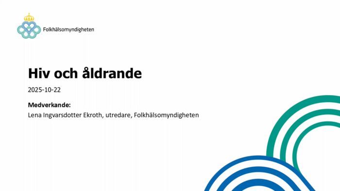 Den 22 oktober 2025 höll Folkhälsomyndigheten ett webbinarium om hiv och åldrande. Webbinariet ingår i en serie om handlingsplan mot hiv aids och vissa sexuellt överförbara infektioner.