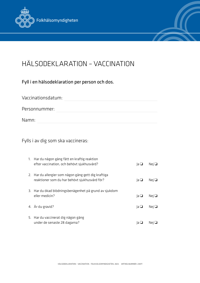 Publicerad:Denna blankett kan användas av regionerna i samband med vaccination. Den kan fyllas i digitalt och skrivas ut på papper. Finns översatt till olika språk.