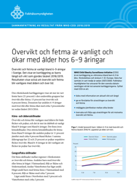 Övervikt och fetma är vanligt bland 6–9-åringar i Sverige. Det visar en kartläggning av barns längd och vikt som gjordes läsåret 2018/2019. Resultaten visar också att övervikt och fetma blir vanligare med åldern och över tid. Den rikstäckande kartläggningen visar att mer än vart femte barn (21 procent) i den undersökta gruppen har övervikt eller fetma: 15 procent har övervikt och 6 procent fetma. Dessutom har andelen 6–9-åringar med övervikt eller fetma ökat med cirka 3 procentenheter sedan läsåret 2015/2016.