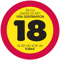 Publicerad:Beställ dekalen: "Är du under 25 år? Visa legitimation. 18 år vid köp av tobaksfria nikotinprodukter".