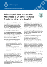 Folkhälsopolitikens målområde 8: En jämlik och hälsofrämjande hälso- och sjukvård