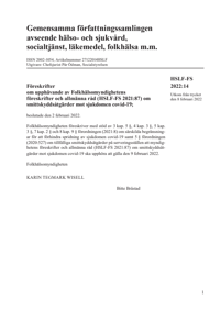 Publicerad:Ändringsförfattning. Beslutade: 2 februari 2022. Gäller från och med: 9 februari 2022.