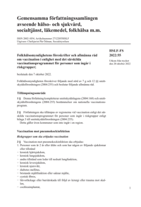 Folkhälsomyndighetens föreskrifter och allmänna råd om vaccination i enlighet med det särskilda vaccinationsprogrammet för personer som ingår i riskgrupper HSLF-FS 2022:55