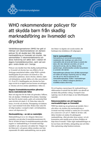 Publicerad:Faktabladet sammanfattar rekommendationer kring policyer för att skydda barn mot skadlig marknadsföring av livsmedel och drycker och sätter dem i relation till dagens livsmedelskonsumtion.