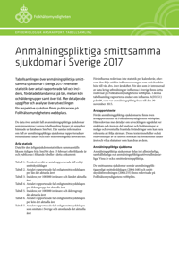 Publicerad:Statistik över antalet rapporterade fall och incidens för anmälningspliktiga smittsamma sjukdomar i Sverige 2017, fördelade bland annat på län, mellan kön och åldersgrupper samt över tid.