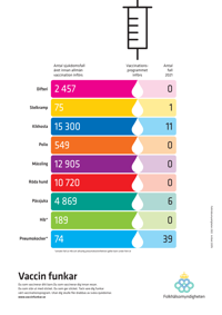 Publicerad:Uppdaterad:Affischen Vaccin funkar illustrerar effekten av det allmänna vaccinationsprogrammet för barn i Sverige. Den är lämplig att sättas upp på mottagningar inom hälso- och sjukvården för att öka medvetenheten om hur stor betydelse vaccinationer har för hälsan.
