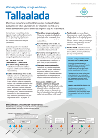 Publicerad:Uppdaterad:Ett informationsblad på somaliska till föräldrar som kort beskriver sjukdomarna som ingår i vaccinationsprogrammet för barn och ger en överblick av vilka vaccinationer som ges vid vilken ålder inom BVC och elevhälsan.
