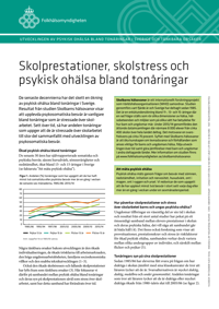 Publicerad:I det här faktabladet sammanfattar vi huvudresultaten från en tvärsnittsstudie om bestämningsfaktorer för hälsorelaterad livskvalitet bland nyanlända barn i Sverige. Data samlades in under 2018 och totalt 2 559 nyanlända barn i åldrarna 12–18 år från Afghanistan, Irak och Syrien besvarade vår enkät…