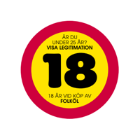 Publicerad:Beställ dekalen: "Är du under 25 år? Visa legitimation. 18 år vid köp av folköl".
