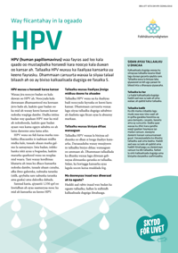 Information på somaliska till vårdnadshavare och elever om HPV (humant papillomvirus) och vaccination mot HPV.
