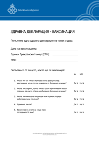 Denna blankett på bulgariska kan användas av regionerna i samband med vaccination. Den kan fyllas i digitalt och skrivas ut på papper.