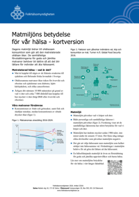 Vår matmiljö, alltså den sociala och fysiska miljö som vi lever i, påverkar både hur vi förhåller oss till och konsumerar mat. Syftet med faktabladet är att höja medvetenheten om matmiljöns betydelse för vår matrelaterade hälsa. Faktabladet beskriver kortfattat hur våra matvanor påverkar vår hälsa, hur de har utvecklats över tid och faktorer i matmiljön som har betydelse för vår matkonsumtion.