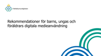 Rekommendationer för barns, ungas och föräldrars digitala medieanvändning Presentationsmaterial