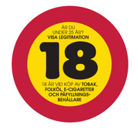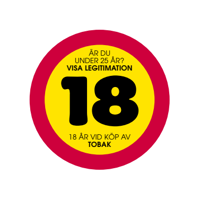 Publicerad:Beställ dekalen: "Är du under 25 år? Visa legitimation. 18 år vid köp av tobaksfria nikotinprodukter".