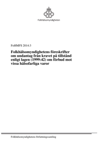Folkhälsomyndighetens föreskrifter om undantag från kravet på tillstånd enligt lagen (1999:42) om förbud mot vissa hälsofarliga varor FoHMFS 2014:3