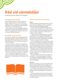 Publicerad:Uppdaterad:Broschyren vänder sig till personal inom vård- och omsorg. Skriften berättar om hur värme påverkar kroppen, om riskläkemedel samt hur vårdpersonal kan bidra till att förebygga ohälsa och sjukdom till följd av värme.
