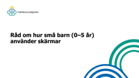 Publicerad:Presentationsmaterialet handlar om rekommendationerna för barn 0–5 års skärmanvändning och kan exempelvis användas som en grund för samtal med vårdnadshavare.