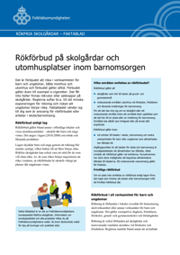 Publicerad:I faktabladet kan du läsa mer om lagen och skolans ansvar. Faktabladet vänder sig till dig som är ansvarig för rökförbudet eller arbetar i skola/barnomsorg.