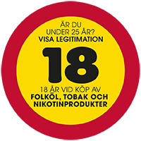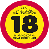Publicerad:Beställ dekalen: "Är du under 25 år? Visa legitimation. 18 år vid köp av folköl, tobak och nikotinprodukter".