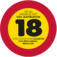 Publicerad:Beställ dekalen: "Är du under 25 år? Visa legitimation. 18 år vid köp av tobaksfria nikotinprodukter".