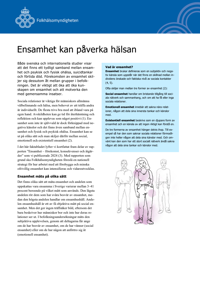 Publicerad:Faktabladet lyfter kortfattat fram delar av rapporten ”Ensamhet – förekomst, konsekvenser och åtgärder – En kartläggning”. Både svenska och internationella studier visar att det finns ett tydligt samband mellan ensamhet och psykisk och fysisk ohälsa, suicidtankar och förtida död.