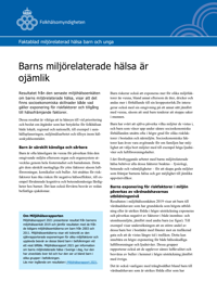 Publicerad:Ett faktablad om barns miljörelaterade hälsa som visar att det finns socioekonomiska skillnader både vad gäller exponering för riskfaktorer och tillgång till hälsofrämjande faktorer.